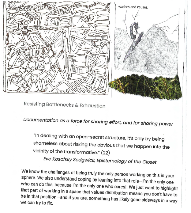 V: I'm hoping to make a chapbook, bigger than a zine, smaller than a formal print book. With the history of some of these projects, I'm hoping I can do a deep dive into two or three and then sort of catalog entries. I don't know, I'm still thinking about it, but a way of mapping and showing the network in this region, and how it's interconnected. And especially I'm thinking about the idea of project ancestry, that if you have a project that inspired one thing, and then another thing, and then that project decomposes, those two projects are still related through this idea of shared ancestry. So I'm hoping we can show some of that network and just make visible that I think there's kind of a movement happening, or that people are connected in ways that may not be visible if you're just googling them, but that there are these ways that groups are interconnected and can share resources, and that we can support that connection and build it and make it stronger. That's kind of my hypothesis, and if I validate it with these groups, I'll make a chapbook, and everyone will get to have a copy. I'm hoping to do a limited print run, but at least we'll have digital versions of all those things.