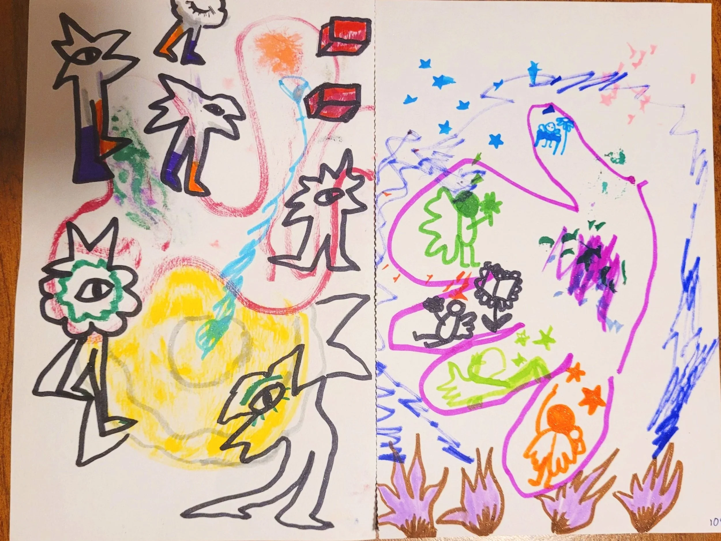 M: I added a flower and a little decoration. I think the path you made with the stars is really beautiful. Have you ever tried to draw your hand?